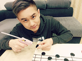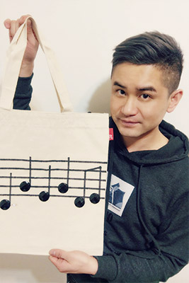 設計概念:我把《我是台灣人》的旋律《Do Sol Mi Sol Re Mi》用音符呈現在五線譜上,優美的音符跳動,表現出台灣人的優雅品質。