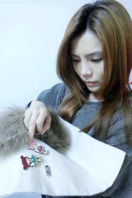 設計概念:手牽手一起向前走,環環相扣傳遞溫柔!用釦子做為點,加上毛絨絨的披肩,讓人不孤單有依靠。彩色釦子經過點、線、面組成ㄧ幅畫,猶如生活中人與人的互助與關懷,讓世界變得既溫暖又美麗。