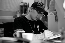 我是以自己臉部五官的素描為主題,去呼應這款包包傳遞給我的簡單感覺,希望能用簡單線條,去襯托它的素雅。無論如何,我覺得人可以選擇過自己想要過的生活,這就是一種幸福。所以人要懂得珍惜、惜福,因為相對於戰亂國家中,沒有選擇權力的無辜孩童來說,此刻能夠對自己的生活做出選擇的每一個人,都是如此幸福的。
