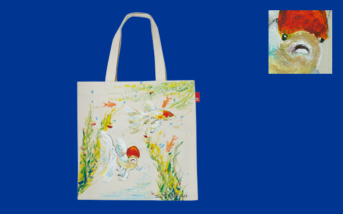 設計概念:我是心靈畫家曾日昇,很高興可以參加這一次包包的彩繪活動,一起做愛心。這一次的這個作品,我想要用快樂的小金魚來做一個創作的導引,希望透過金魚的可愛,導引出悠遊自在、無憂無慮,帶來幸福快樂的心靈感動,謝謝