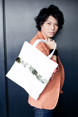 利用回收的金色圓型亮片,組成宛如”龍”的長條造型包覆包包,而金色亮片象徵龍的鱗片,表達出華麗而喜氣的感覺,呼應今年的東方”龍年”,也剛好是我的本命年。”Y”則是名字縮寫。