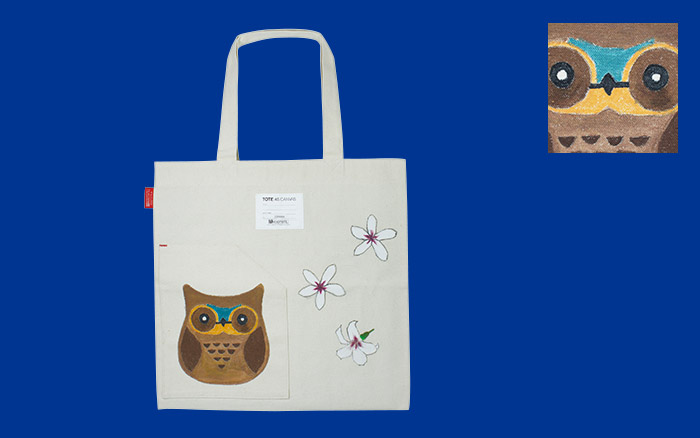 設計概念:建欽雖然雙手不方便,但靠著上天給予他的繪畫天份及自己的努力;用雙腳彩繪出美麗的圖畫,建欽表示:貓頭鷹在日本是「祈福平安」也是智慧的象徵;希望大家都能平安幸福~