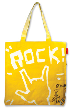 這次包包設計的主軸以簡單的黃色透露出小朋友天真的心靈,也象徵勇氣。以搖滾最經典的手勢圖案,邀請大家獻出關懷。很開心能參與這樣的活動,當自己一步一腳印完成包包的時候,心裡也想這世界上也許很多的孩童需要被幫助,希望他們也能跟我們一樣開心的活在這個世界上,跟我們做著一樣的事情。