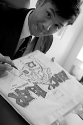 | 設計概念: | 這次包包設計的主軸是~以籃球團隊為設計概念。一切強調〝TEAM〞才可以得到勝利。 因為在任何工作或是社會中,如果沒有團隊那就〝亂啦〞。 至於包包上的圖案意義是:因為在籃球場上,〝暫停〞是為了讓球員更有凝聚力、更穩定,對彼此更能加油鼓勵。而且在籃球世界中,HIP HOP音樂及文化絕對是〝王道〞啊!!!象徵的就是:彼此的情感在當下是一種沒有血源關係的〝兄弟〞,一切都為了勝利努力著。 |
